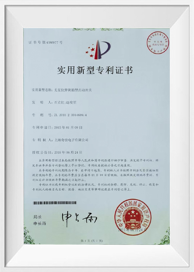 En las áreas de innovación tecnológica y estandarización, la empresa ha logrado resultados fructíferos, poseyendo más de 60 patentes de diversos tipos, incluidas más de 10 patentes de invención. La empresa ha participado en la formulación y revisión de numerosos estándares nacionales e industriales para interruptores de electrodomésticos, promoviendo continuamente el desarrollo de la estandarización técnica en la industria. Aprovechando su destacada solidez integral, la empresa ha recibido numerosos títulos honoríficos, entre ellos "Empresa de relaciones laborales armoniosas de Shanghai", "Empresa de alta tecnología de Shanghai" y "Empresa especializada e innovadora de Shanghai", lo que demuestra su importante contribución al desarrollo económico e industrial regional.
