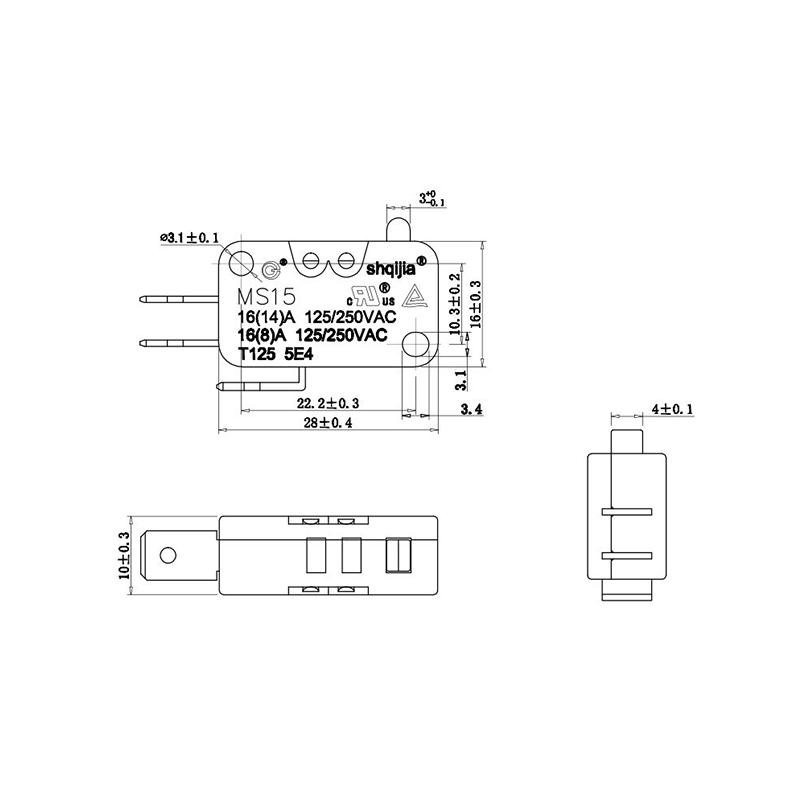 Compañía Electrónica Qijia de Shanghái, Ltd. Inicio / Productos / Microinterruptor / Microinterruptor MS15-2 / Microinterruptor de carcasa de plástico negro MS15-2C2