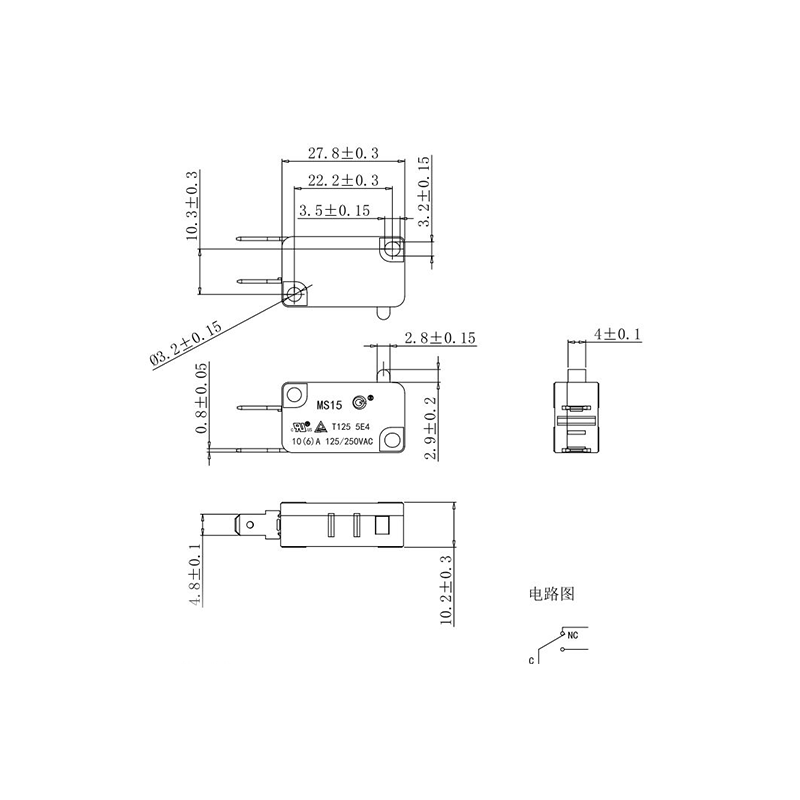 Compañía Electrónica Qijia de Shanghái, Ltd. Inicio / Productos / Microinterruptor / Microinterruptor MS15-6 / MS15-6B3 Alta seguridad Fuerte compatibilidad Micro Switch