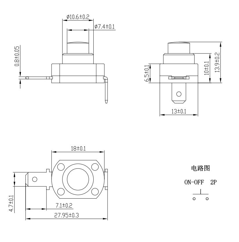 3. Descripción del producto: La serie P12-6 es un interruptor de botón de uso general que normalmente se utiliza en herramientas eléctricas portátiles y equipos de limpieza de telas que funcionan en entornos de baja corriente. Los ejemplos incluyen: pequeñas herramientas eléctricas, máquinas limpiadoras de telas, etc.