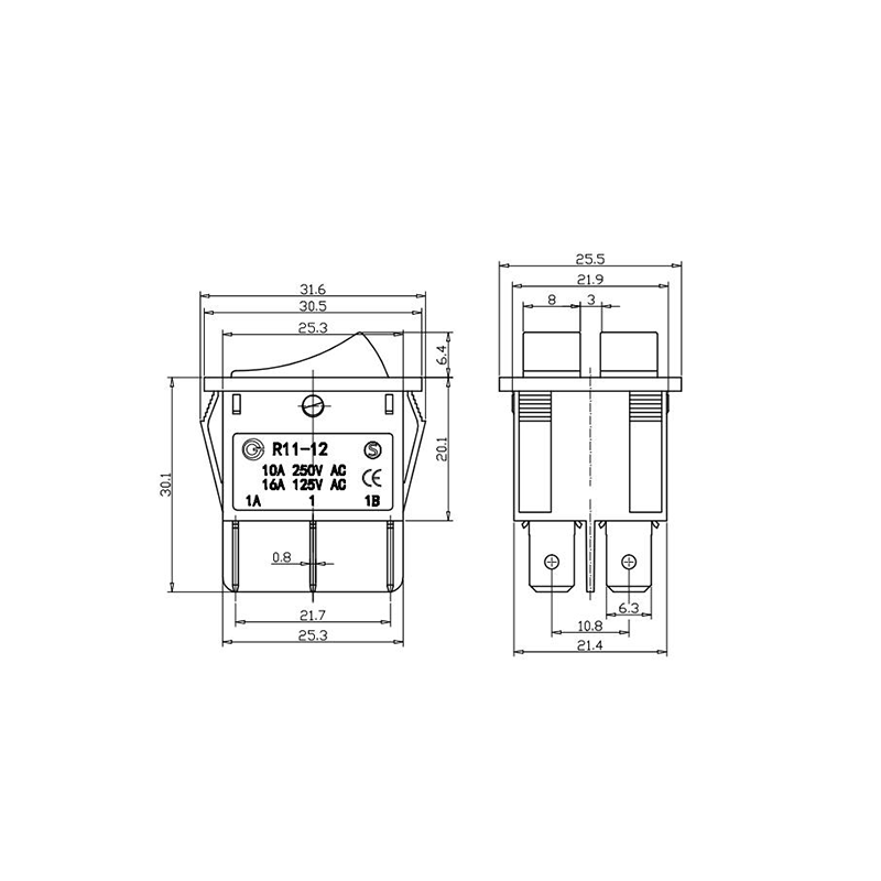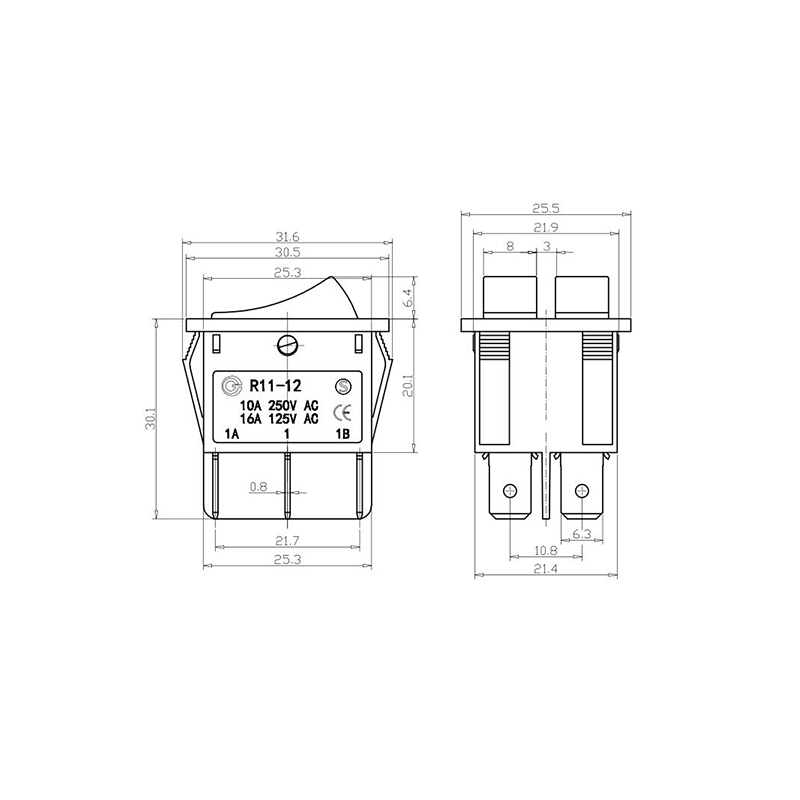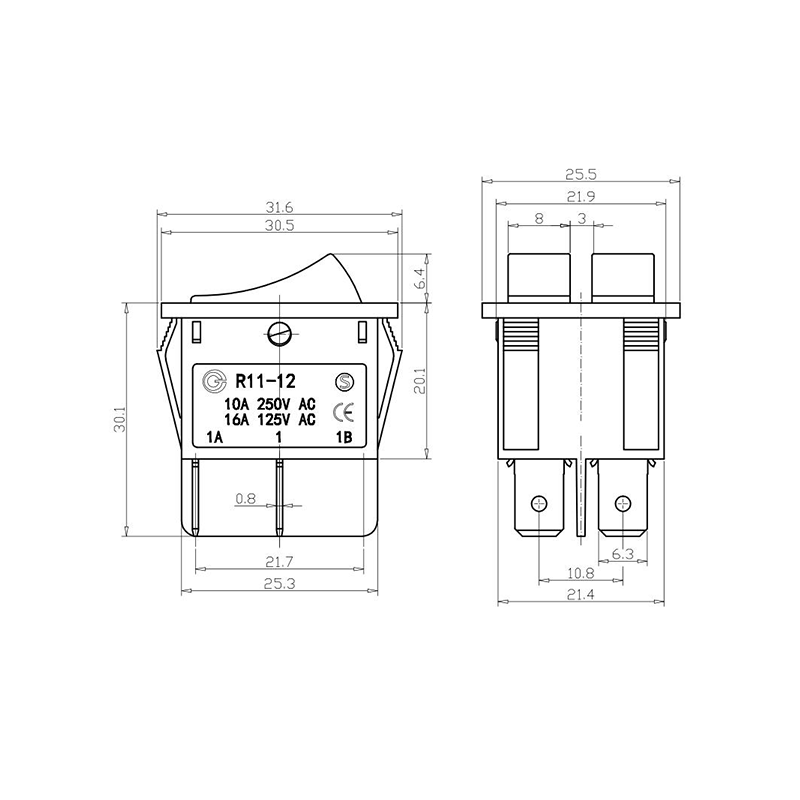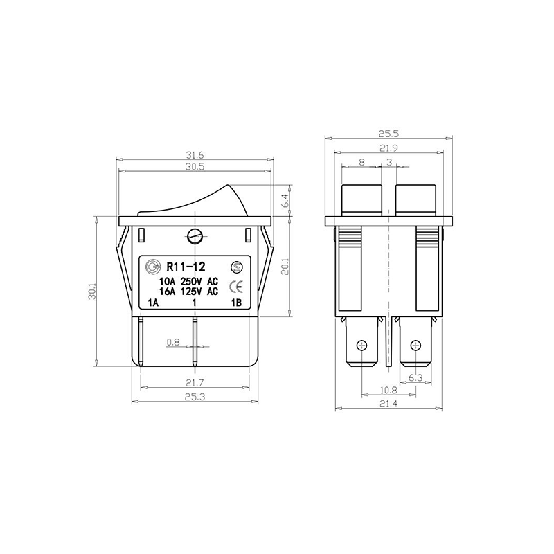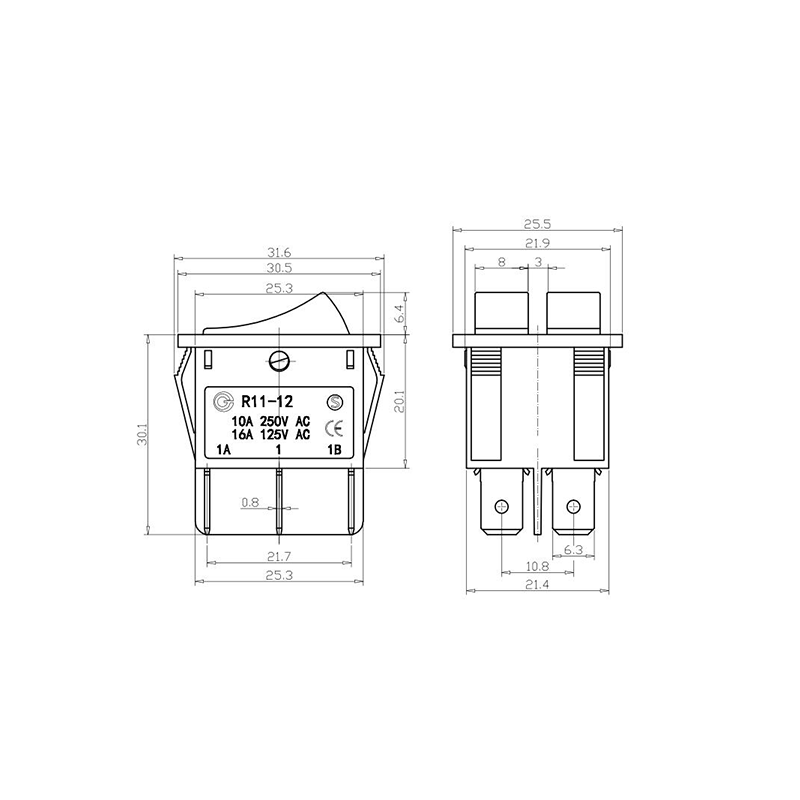 Compañía Electrónica Qijia de Shanghái, Ltd. Inicio / Productos / Interruptor basculante / Interruptor basculante R11 / Interruptor basculante de doble polo R11-12