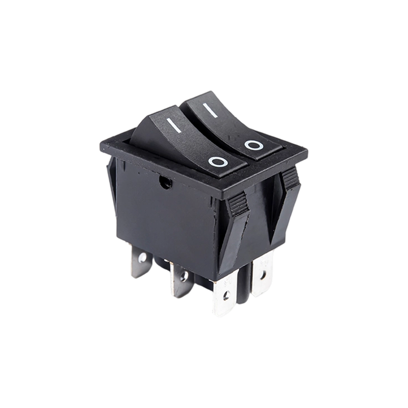 La serie de interruptores basculantes de palanca de doble polo R11-12 es un interruptor de palanca de doble polo, también conocido comúnmente como interruptor basculante o interruptor de onda. Este producto es muy versátil y ampliamente utilizado en diversos electrodomésticos y equipos de oficina, con múltiples variantes disponibles para satisfacer diversos requisitos de aplicación.