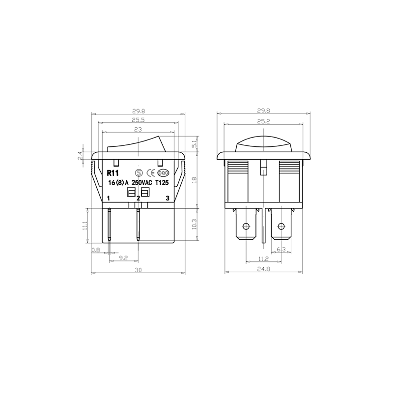 La serie R11-32 está certificada por múltiples estándares de seguridad internacionales, incluidos UL (EE. UU.), S (Japón), CE (Europa) y CQC (China), lo que garantiza el cumplimiento para aplicaciones globales y lo convierte en un componente confiable para la exportación y la integración diversificada de sistemas eléctricos.