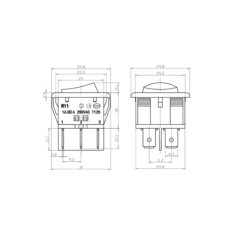 Estructuralmente, el interruptor está construido con una carcasa de plástico de alta calidad y contactos de aleación de plata, lo que garantiza una larga vida útil y una excelente conductividad eléctrica. Los pines de los terminales inferiores admiten una instalación de conexión rápida estándar, lo que permite un cableado eficiente y un reemplazo fácil. Sus dimensiones estandarizadas lo hacen ideal para producción en masa y mantenimiento rutinario.