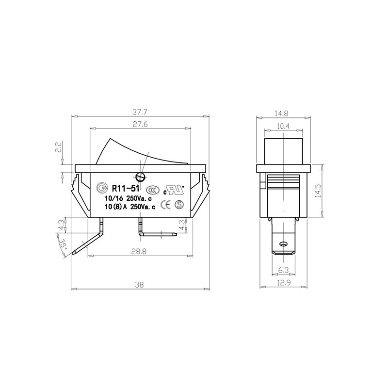 Compañía Electrónica Qijia de Shanghái, Ltd. Inicio / Productos / Interruptor basculante / Interruptor basculante R11 / Interruptor basculante de sierra de mar R11-51