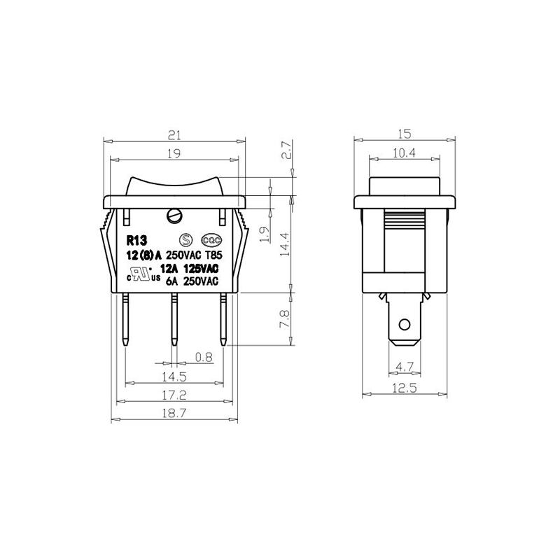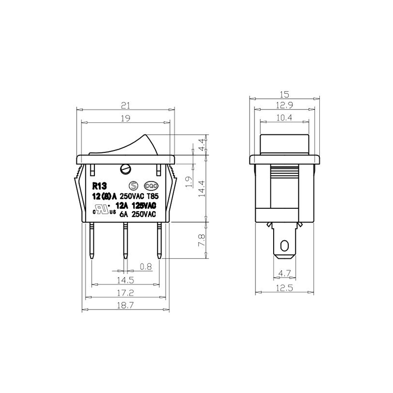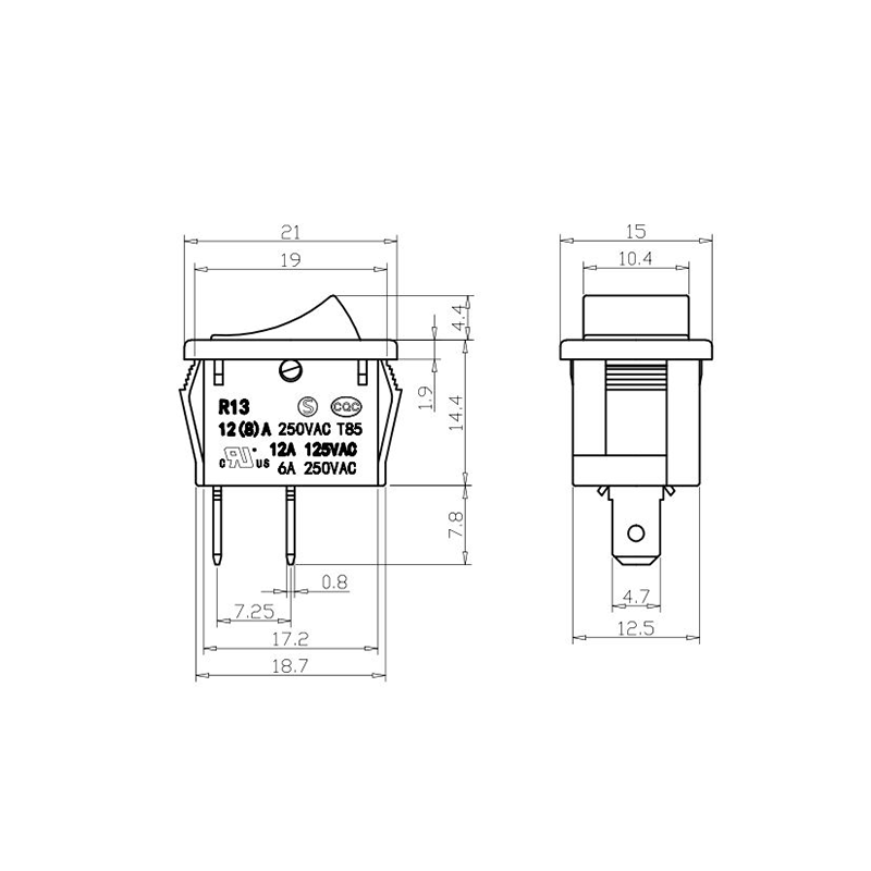 Compañía Electrónica Qijia de Shanghái, Ltd. Inicio / Productos / Interruptor basculante / Interruptor basculante R13 / R13-11 Interruptor basculante para herramientas eléctricas pequeñas