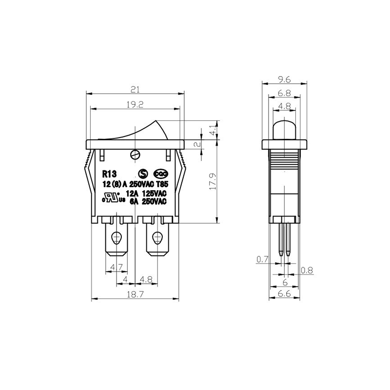Compañía Electrónica Qijia de Shanghái, Ltd. Inicio / Productos / Interruptor basculante / Interruptor basculante R13 / R13-61 Interruptor basculante estrecho y plano