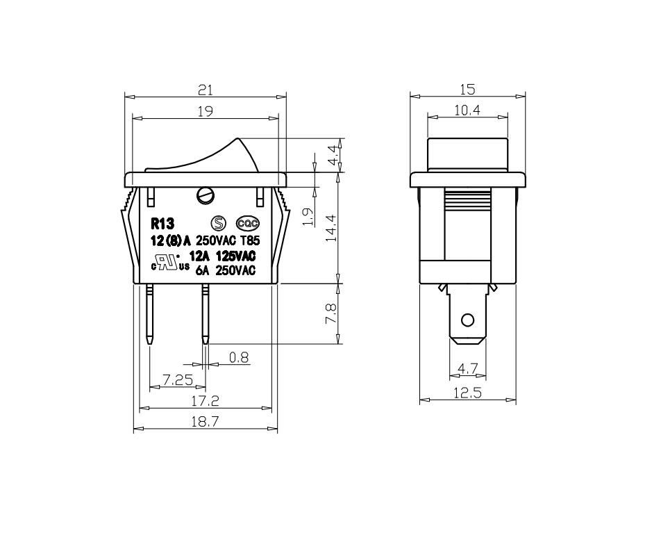 3. Descripción del producto: La serie R13-1 es un interruptor basculante compacto estándar con reinicio automático. Disponible en dos configuraciones: estructura estándar con cubierta antipolvo/impermeable o estructura interna antipolvo. Extremadamente versátil, se utiliza ampliamente en pequeñas herramientas eléctricas como cortadoras de césped, clavadoras eléctricas, lijadoras manuales, láseres, etc.